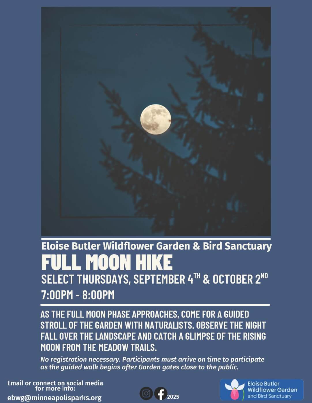No registration necessary. Participants must arrive on time to participate as the guided walk begins after Garden gates close to the public.