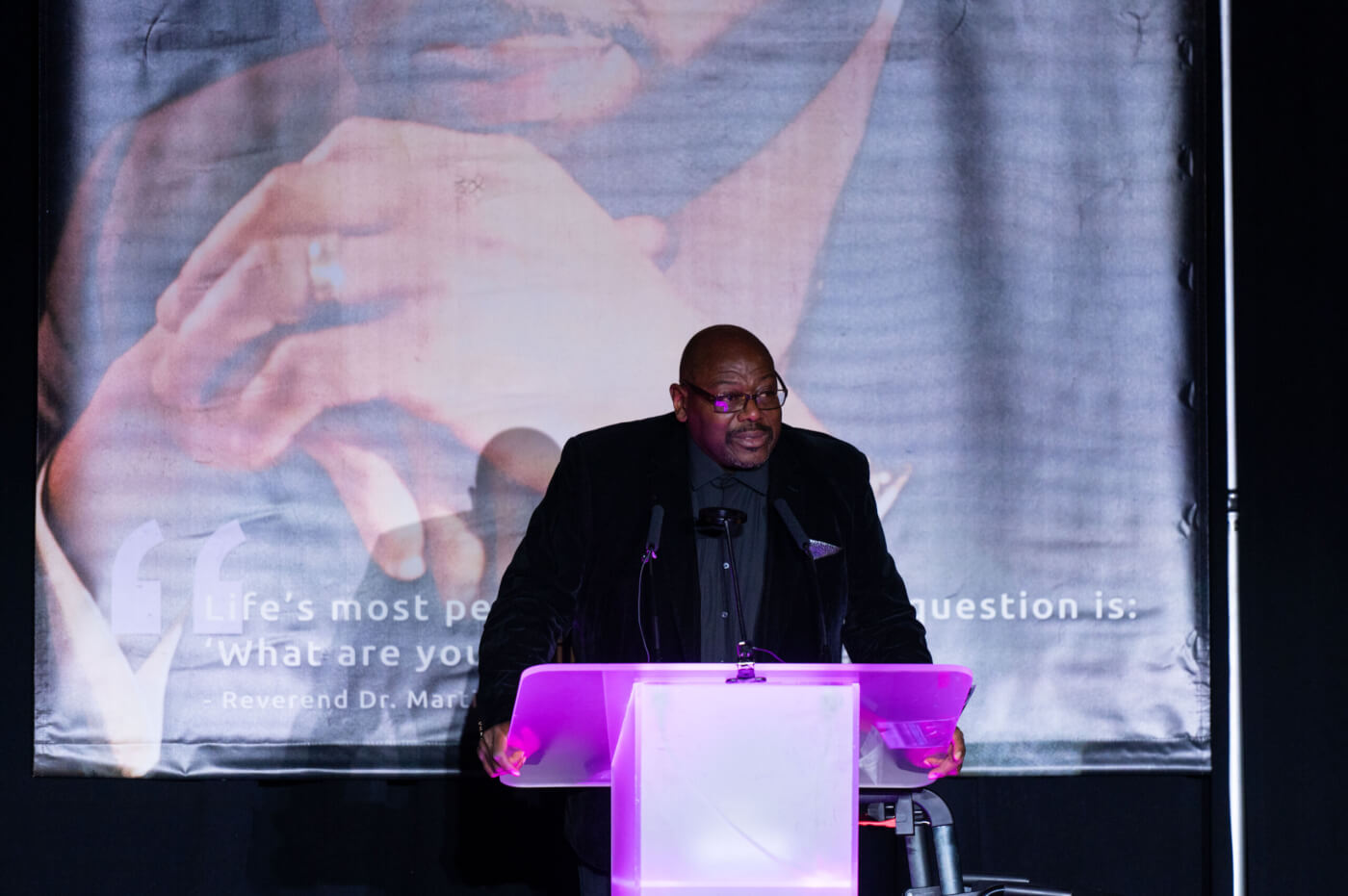 Walter “Q Bear” Banks speaks after being recognized with the 2024 Living the Dream Award