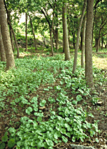 Invasive plants can become established in many types of habitats but, in general, they are more likely to invade ecosystems that have been disturbed by human activity. Some invasive plants also produce allelopathic substances, “chemicals” released through roots, fruits or leaves that inhibit or prevent the growth and establishment of native plants.