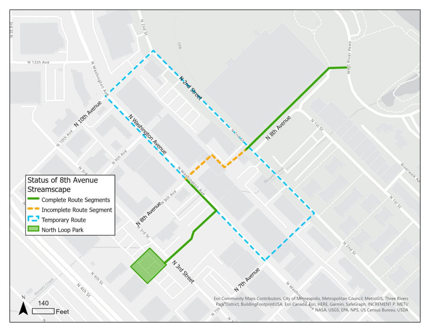 8th Avenue Streamscape Connecting North Loop neighborhood to the Mississippi Riverfront via parks, public walkways and green space along 8th Avenue N