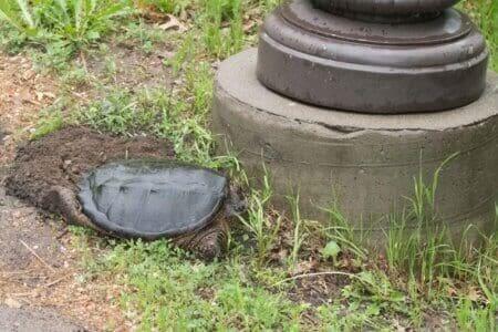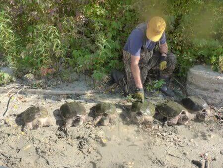 With few exceptions, Minneapolis’ turtles overwinter in mud at the bottom of water that is deep enough not to freeze solid. This means that in fall turtles often walk across land and roads as they move to safe wintering spots.