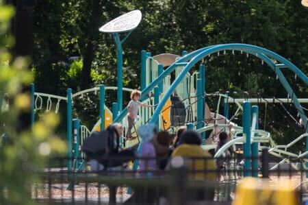 Additional park improvements were completed in 2024 with 20-Year Neighborhood Park Plan funding. It brought to the park a new and expanded playground with the park system’s first long-length zipline and other accessible play features, and a new wading pool with an accessible “zero depth” entry. The park’s mature trees were preserved during the project and the entry plaza to the recreation center was improved and resurfaced.