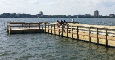 Fishing docks were first installed at Bde Maka Ska in 1966. A new fishing dock was installed at the northwest corner of the lake in 2012 and the dock near 36th Street – the oldest in Minneapolis – was replaced in 2013 after a storm left it irreparably damaged.