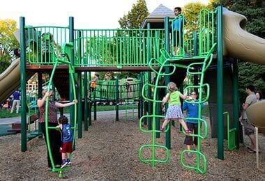 Enjoy a leisurely day in the park as the kids enjoy themselves on the playground.