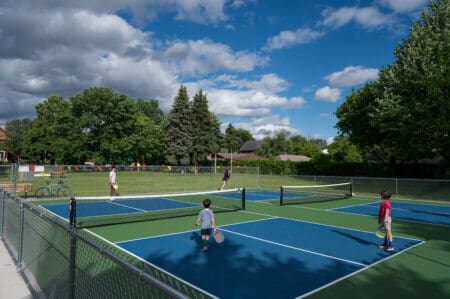 Dickman Park features a pickleball court, basketball court, and community garden.