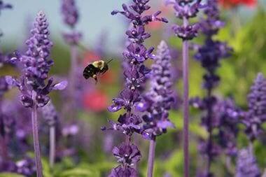 Bumblebee visiting Salvia "Mystic Spires Blue" at Longfellow Gardens
