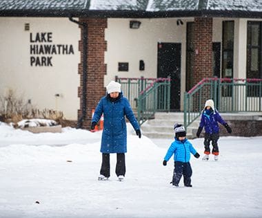Lake Hiawatha Park offers outdoor programming year-round with ice skating and hockey in the winter.