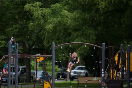 Farwell Park’s open play field, picnic tables and community bulletin boards make the park a neighborhood gathering place.