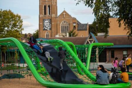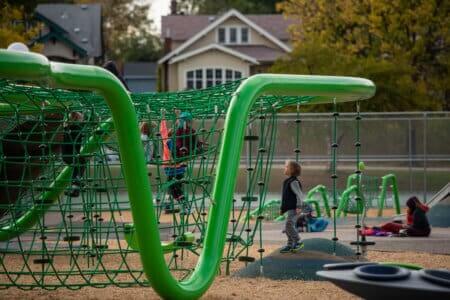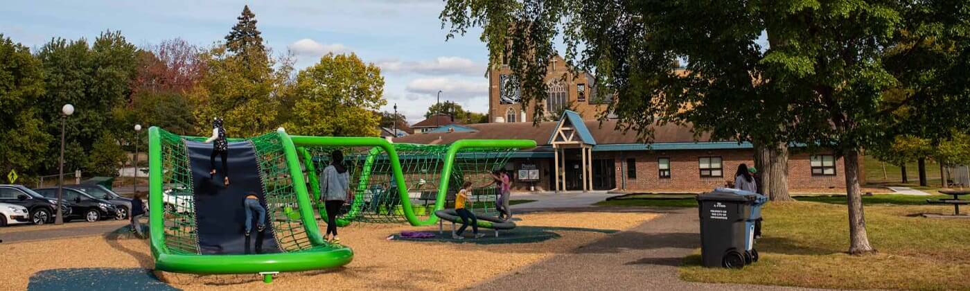 Further improvements were made to the park and the center in 2000; and two baseball fields were upgraded in 2010, thanks to funding, expertise and volunteer labor from the Minnesota Twins Community Fund and The Toro Company. The park’s master plan, approved in 2016, guided an initial phase of improvements in 2020-2022, which included new play areas for ages 2-5 and ages 5-12, and replaced the wading pool with a splash pad.