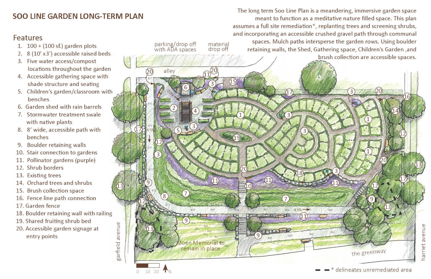 Once approved, the long-range concept design for Soo Line Community Garden will support fundraising efforts to construct the full project.