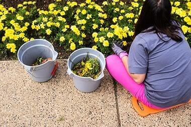 Volunteer Weeding Flowerbed at Lyndale Garden