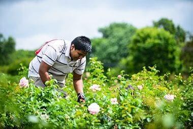 Volunteer Tending Rosebushes at Lyndale Garden