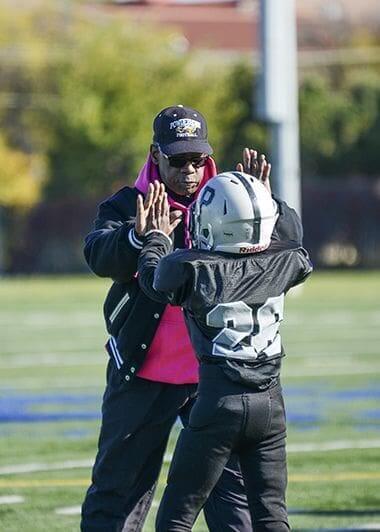 Volunteer Football Coach High Fiving a Player