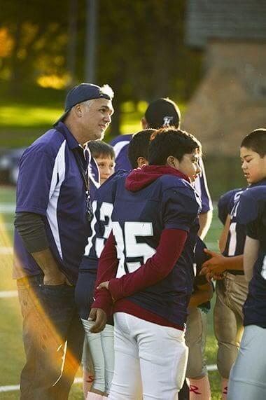 Volunteer Football Coach Talking with Group of Players